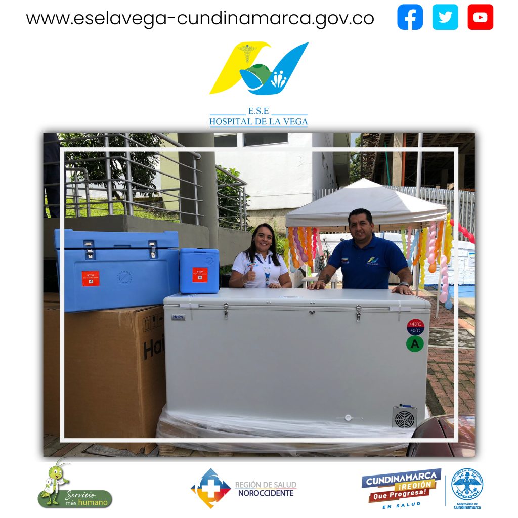 Desde la Secretaria de Salud de Cundinamarca, la E.S.E HOSPITAL DE LA VEGA recibió donación de un refrigerador, un congelador, 4 cabas de transporte de vacunación canina y felina, 8 termos de transporte para aplicación de vacunación canina y felina con el fin de seguir fortaleciendo el programa de vacunación de animales en los municipios de La Vega y Nocaima.