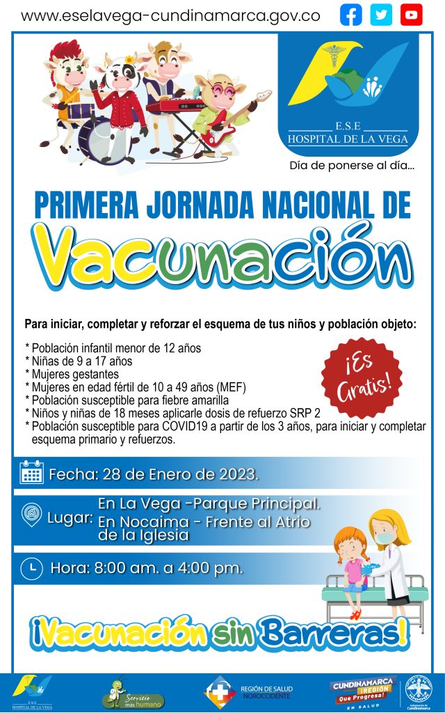La E.S.E HOSPITAL DE LA VEGA te invita a participar de la Primera Jornada Nacional de Vacunación este 28 de Enero.