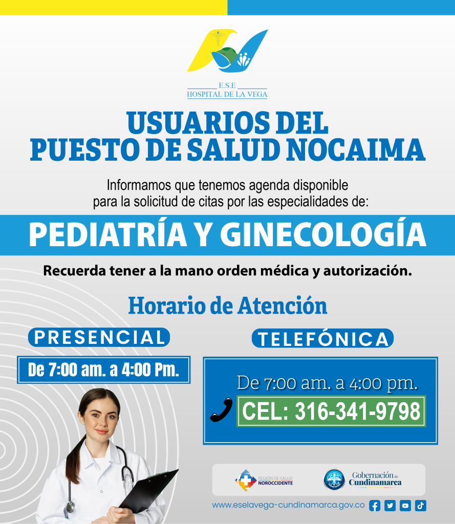 02 Oct Nocaima, Salud Disponibilidad de citas por pediatría y ginecología. 2 enero, 2025 By Comunicaciones Facebook