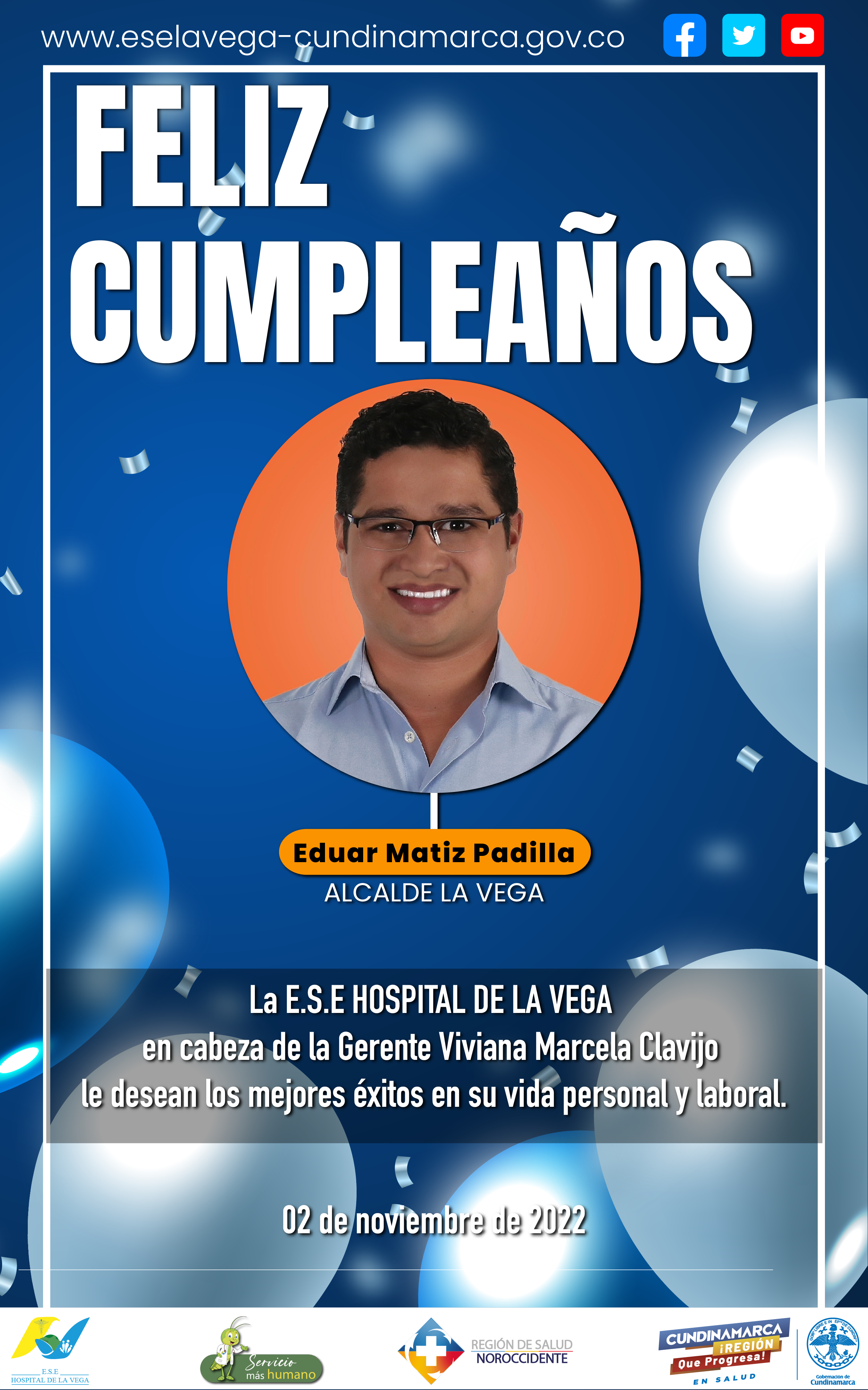 La Vega Feliz Cumpleaños Alcalde Eduar Matiz Padilla 3 noviembre, 2022 Posted by Comunicaciones 02 Nov