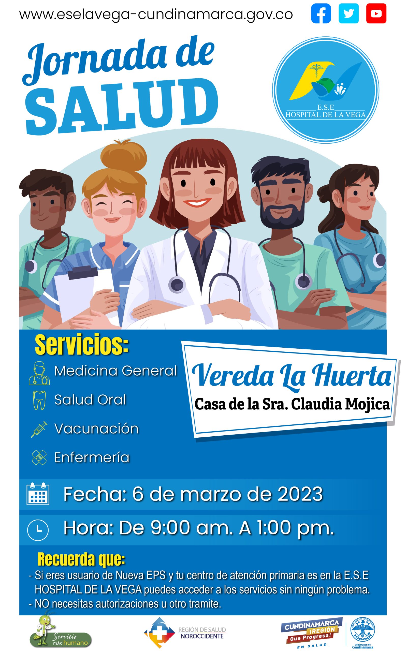 La Vega, Salud Invitación Jornada de Salud en Vereda La Huerta 4 marzo, 2023 Posted by Comunicaciones 04 Mar