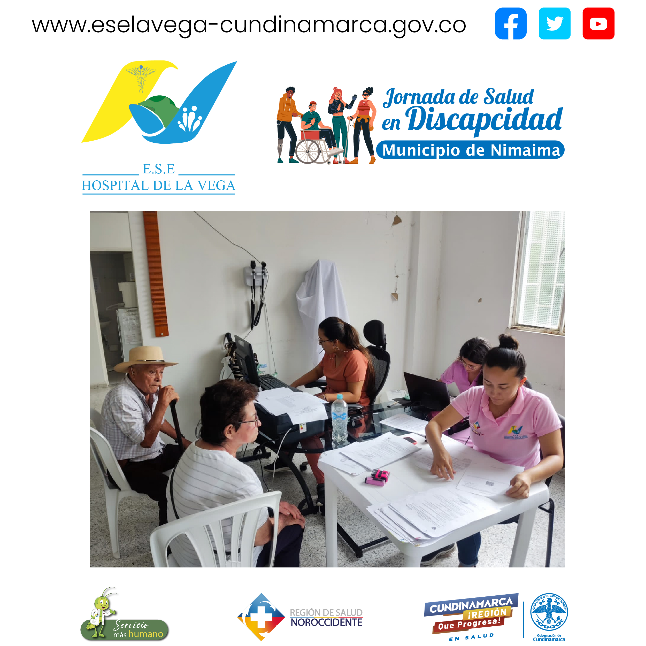 Con el fin de dar el acceso a las personas con #discapacidad a los servicios de salud la E.S.E Hospital De La Vega llego hasta el Municipio de Nimaima, garantizando condiciones de igualdad con las demás personas y con la debida atención a sus necesidades en salud tanto física como mental.