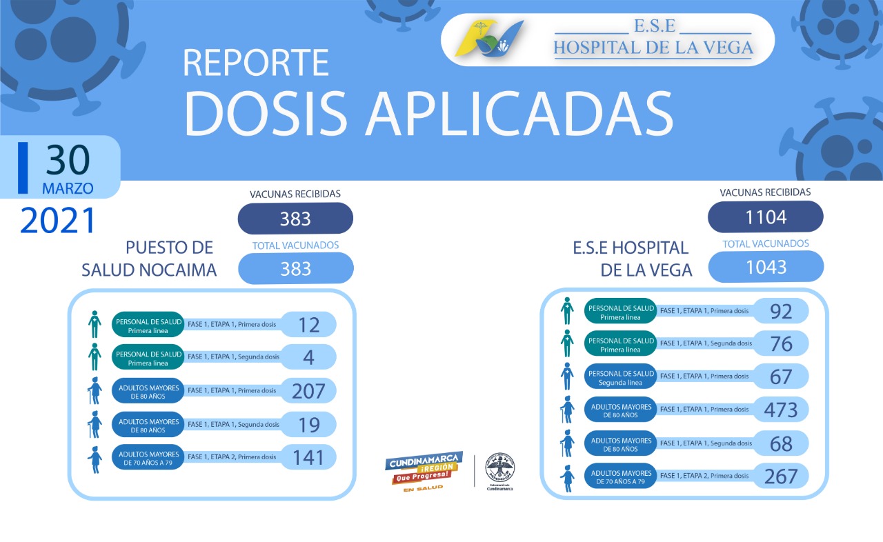 REPORTE DOSIS APLICADAS E.S.E HOSPITAL DE LA VEGA Y PUESTO DE SALUD NOCAIMA