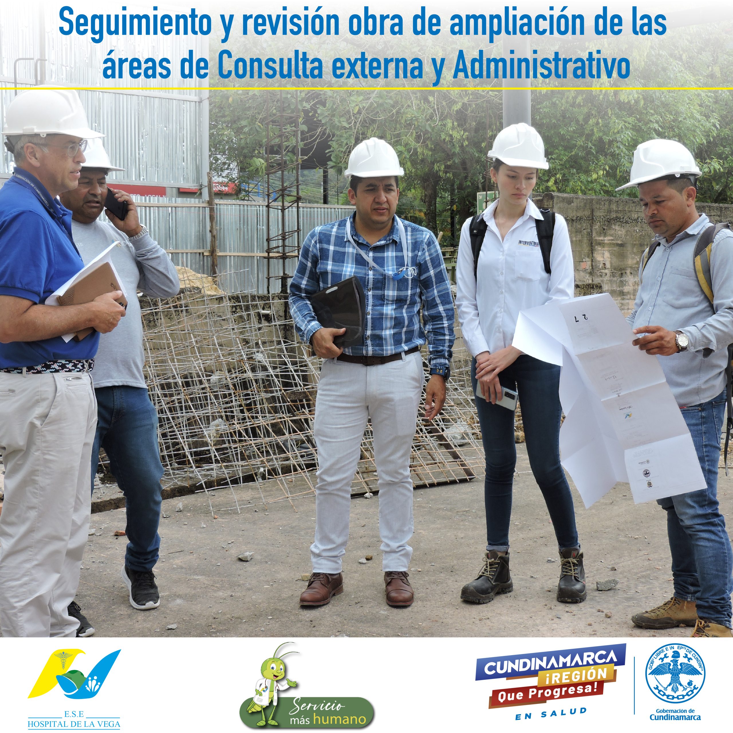 El día de hoy la E.S.E HOSPITAL De la Vega realiza seguimiento y revisión en conjunto con personal de la Dirección de Desarrollo de Servicios de la Secretaría de Salud de Cundinamarca, al convenio 797 de 2021, y el ICCU (Instituto de Infraestructura y Concesiones de Cundinamarca) en la obra de ampliación del Área de Consulta externa y Área Administrativa.