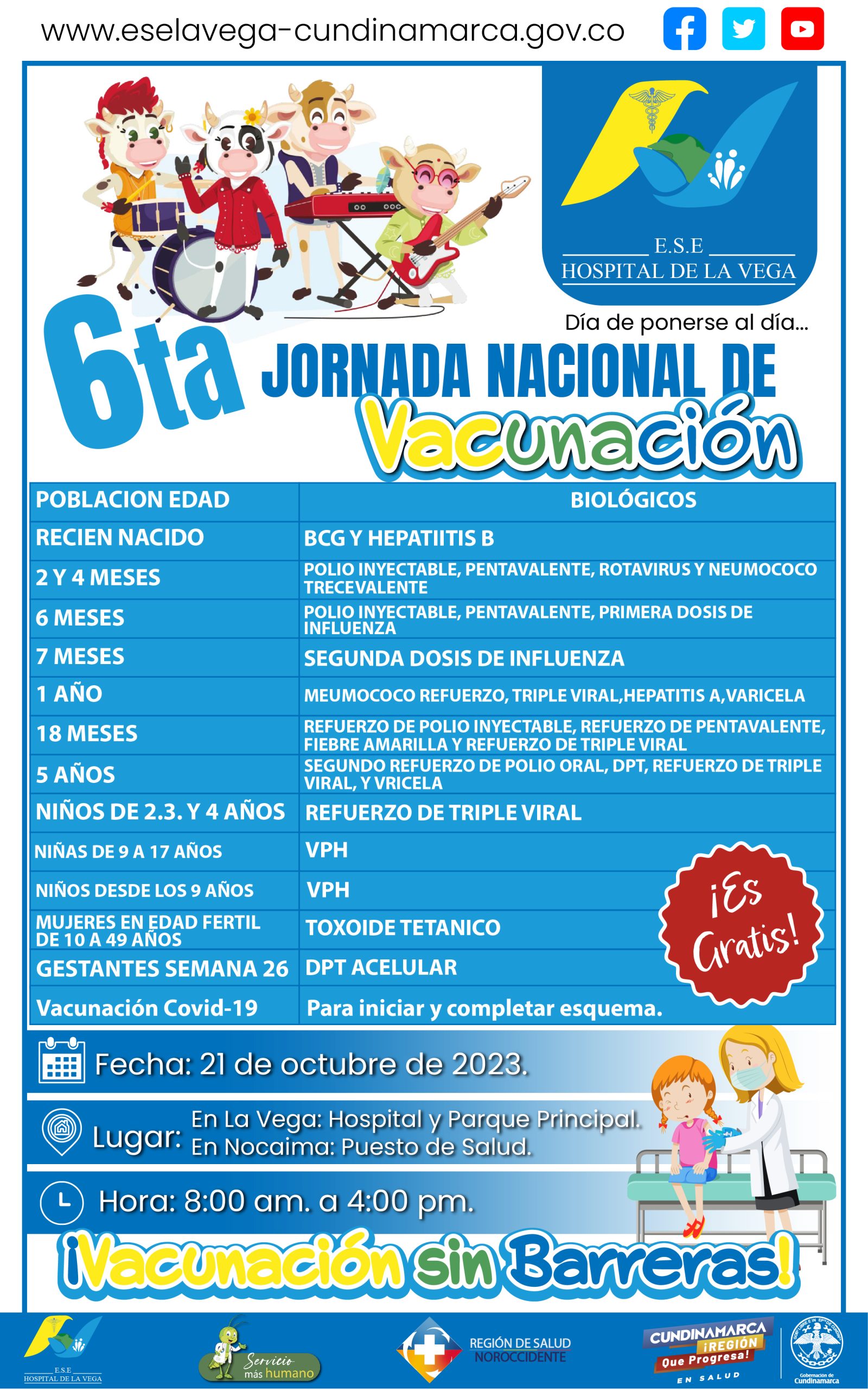 La Vega, Salud Sexta Jornada Nacional de Vacunación 8 noviembre, 2023 Posted by Comunicaciones 16 Oct